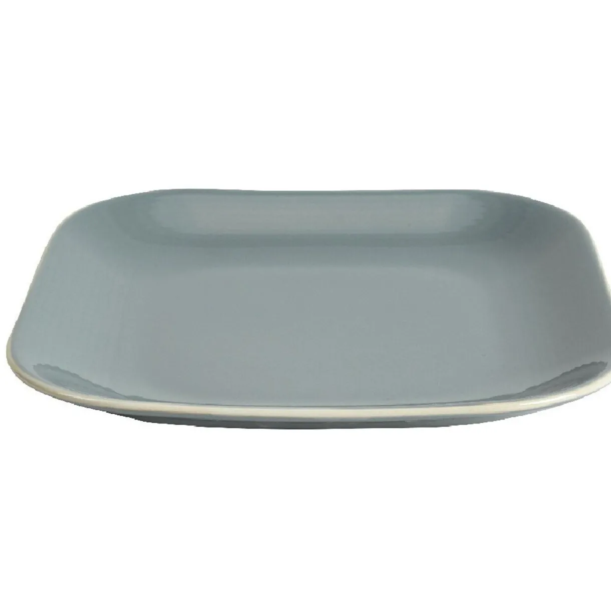 Assiette à dessert carré en grès, de couleur grise à l’intérieur et blanche à l’extérieur.