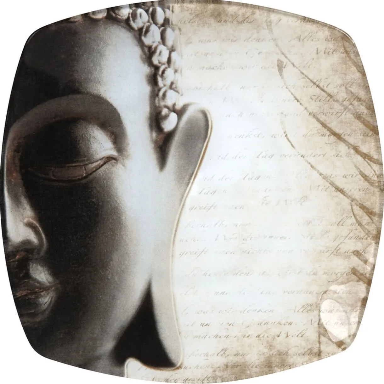 Assiette à dessert carrée design Bouddha, dim. 20×20 cm, verre.