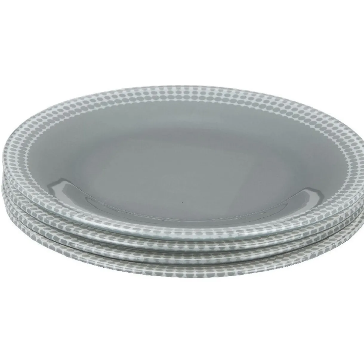 4 assiettes à dessert Dotty de couleur gris et blanc avec bord à pois.