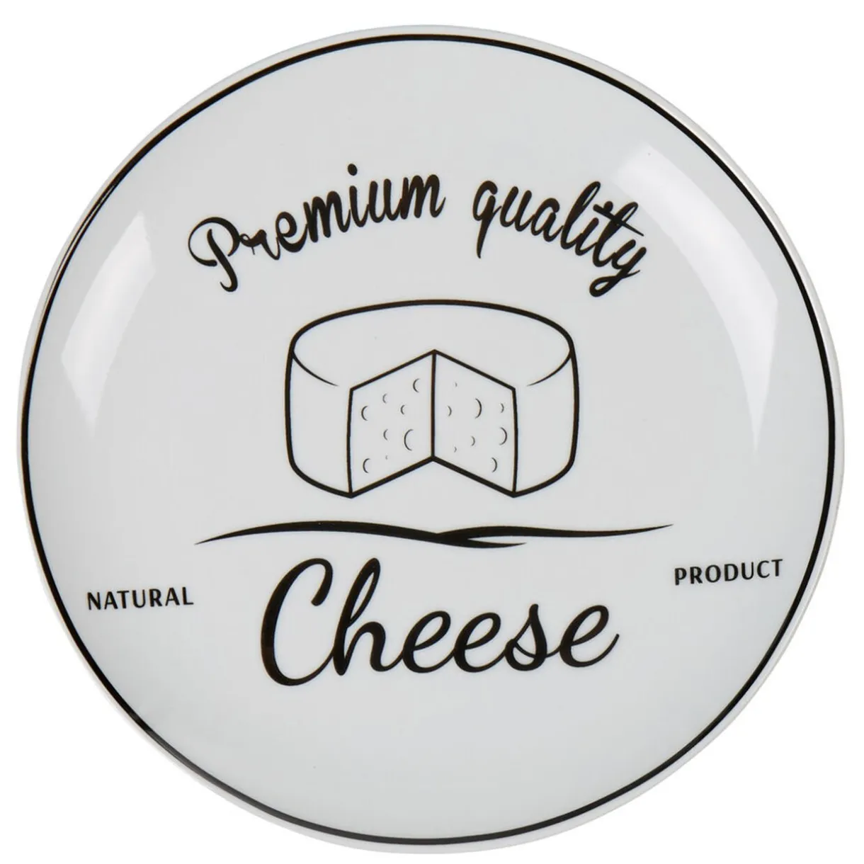 Assiette ronde blanche et noire design Cheese Premium quality, idéal pour la présentation et le service des fromages.