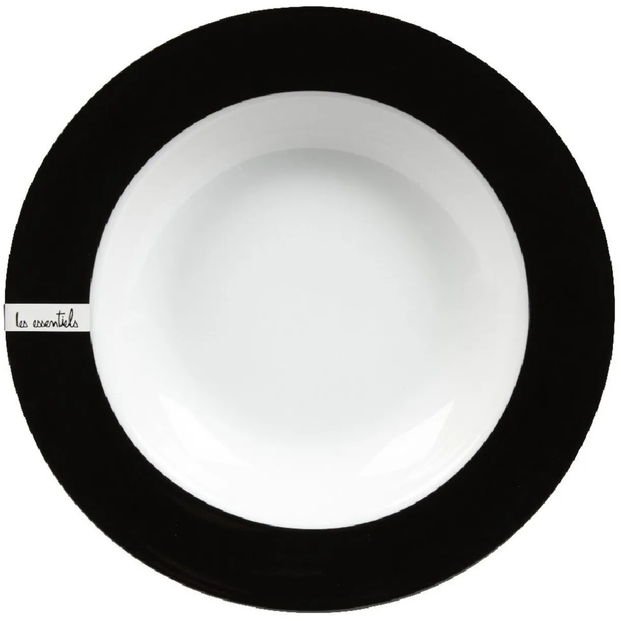 Assiette creuse noire et blanche, ø 21,5 cm, porcelaine.