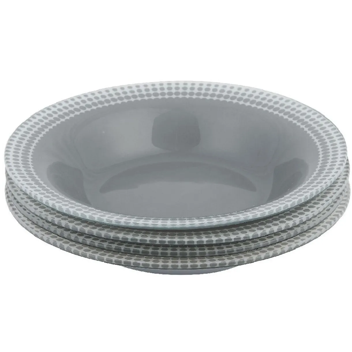 4 assiettes creuses Dotty de couleur gris et blanc avec contour à pois.