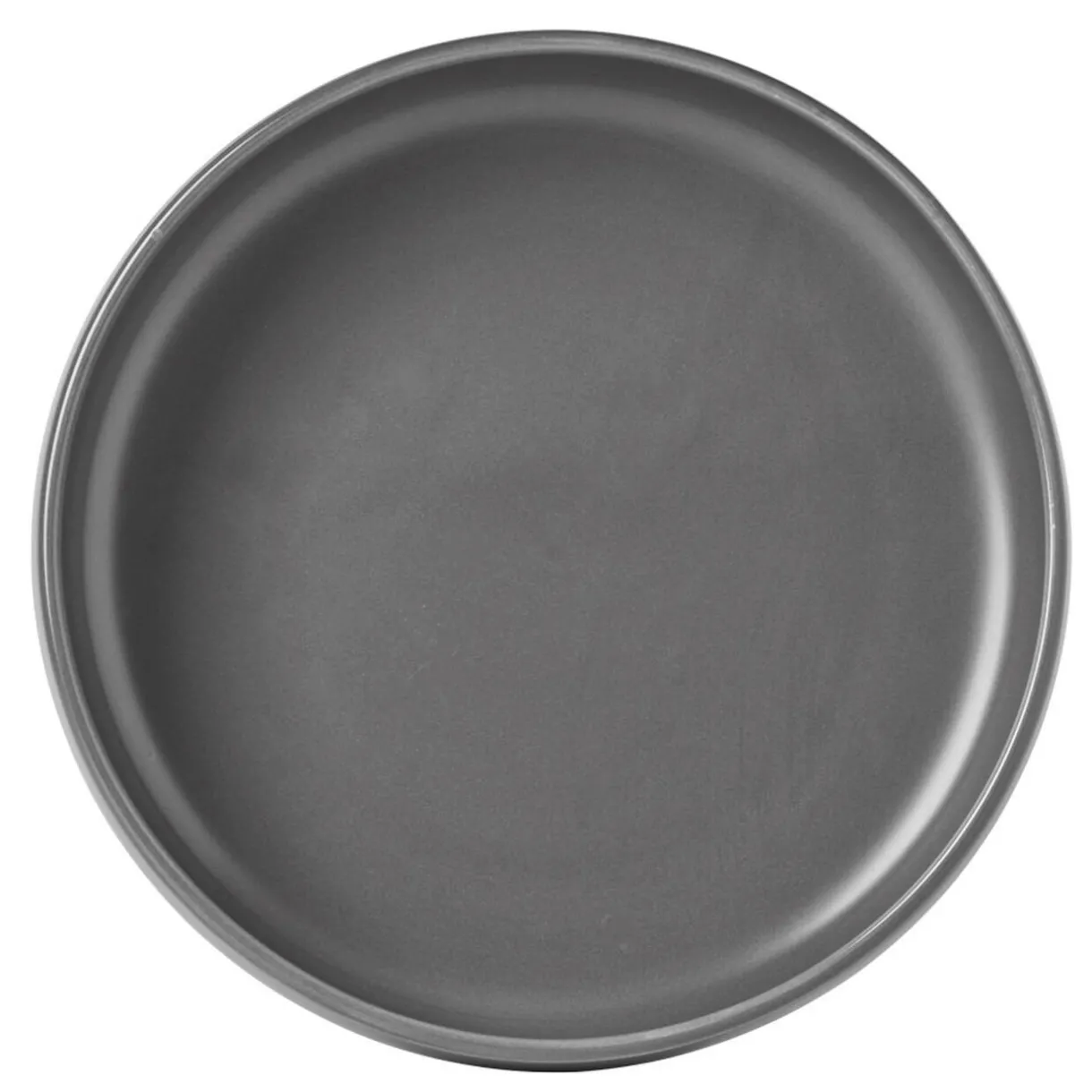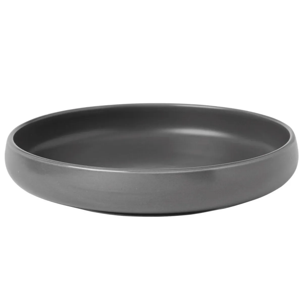 Assiette de dégustation creuse de forme ronde couleur gris foncé.