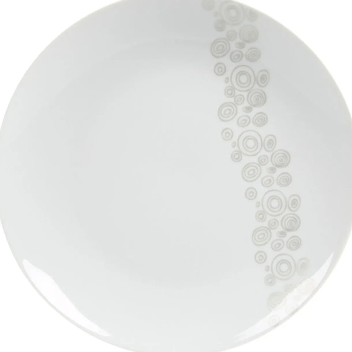 Assiette à dessert blanche, motifs ronds argentés, porcelaine, ø 27 cm.