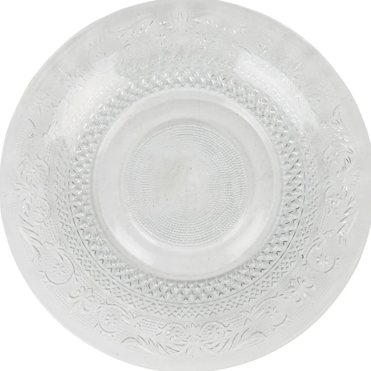 Assiette plate transparente en verre ciselé, ø 25,5 cm.