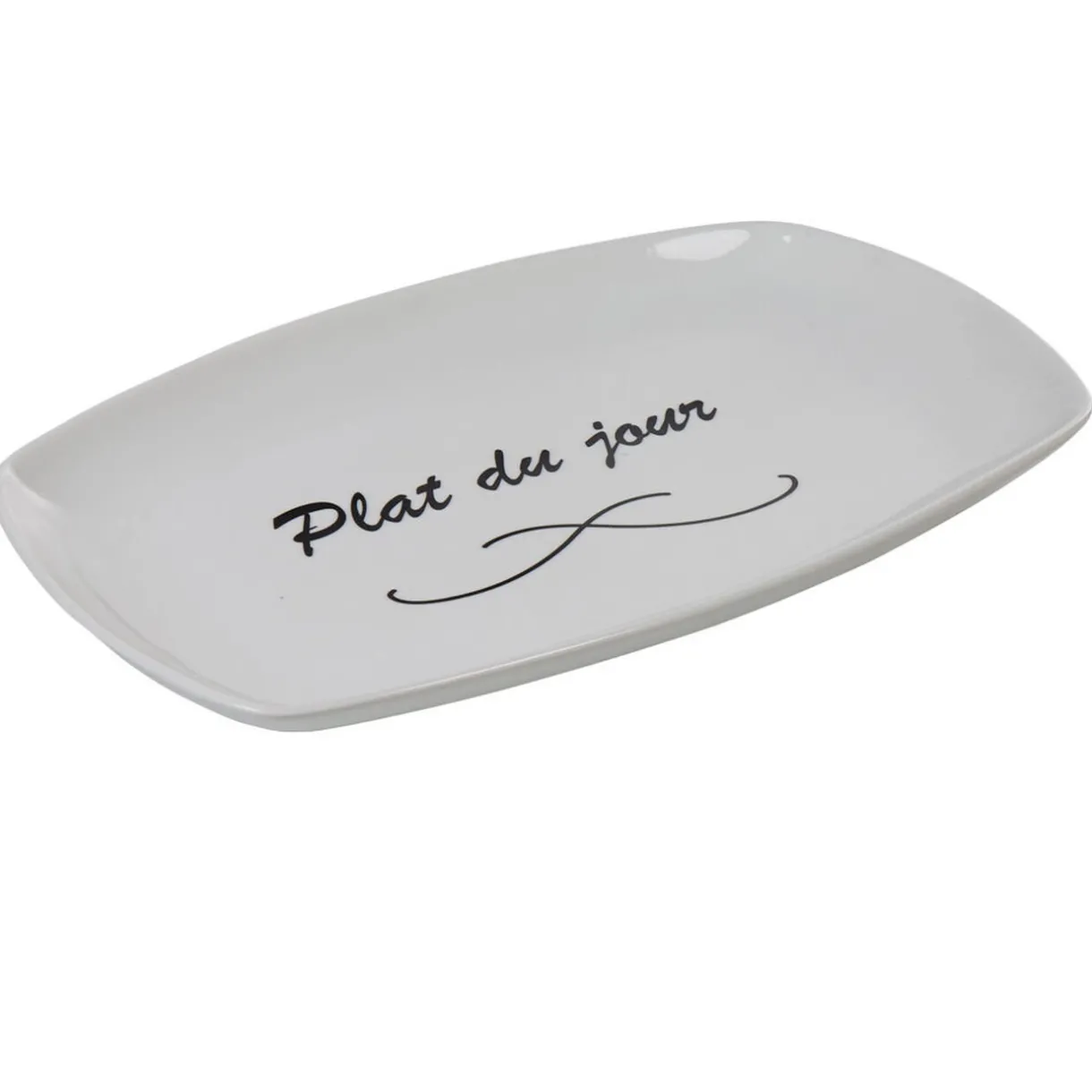 Assiette rectangulaire blanche message plat du jour^Gifi Sale
