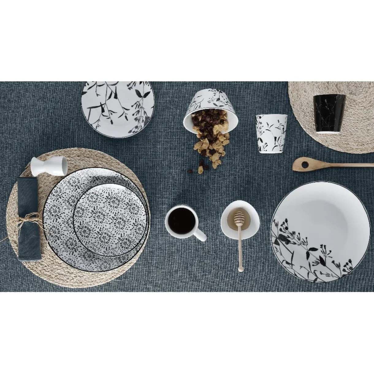 Assiette ronde blanche décor tiges feuilles noires^Gifi Clearance