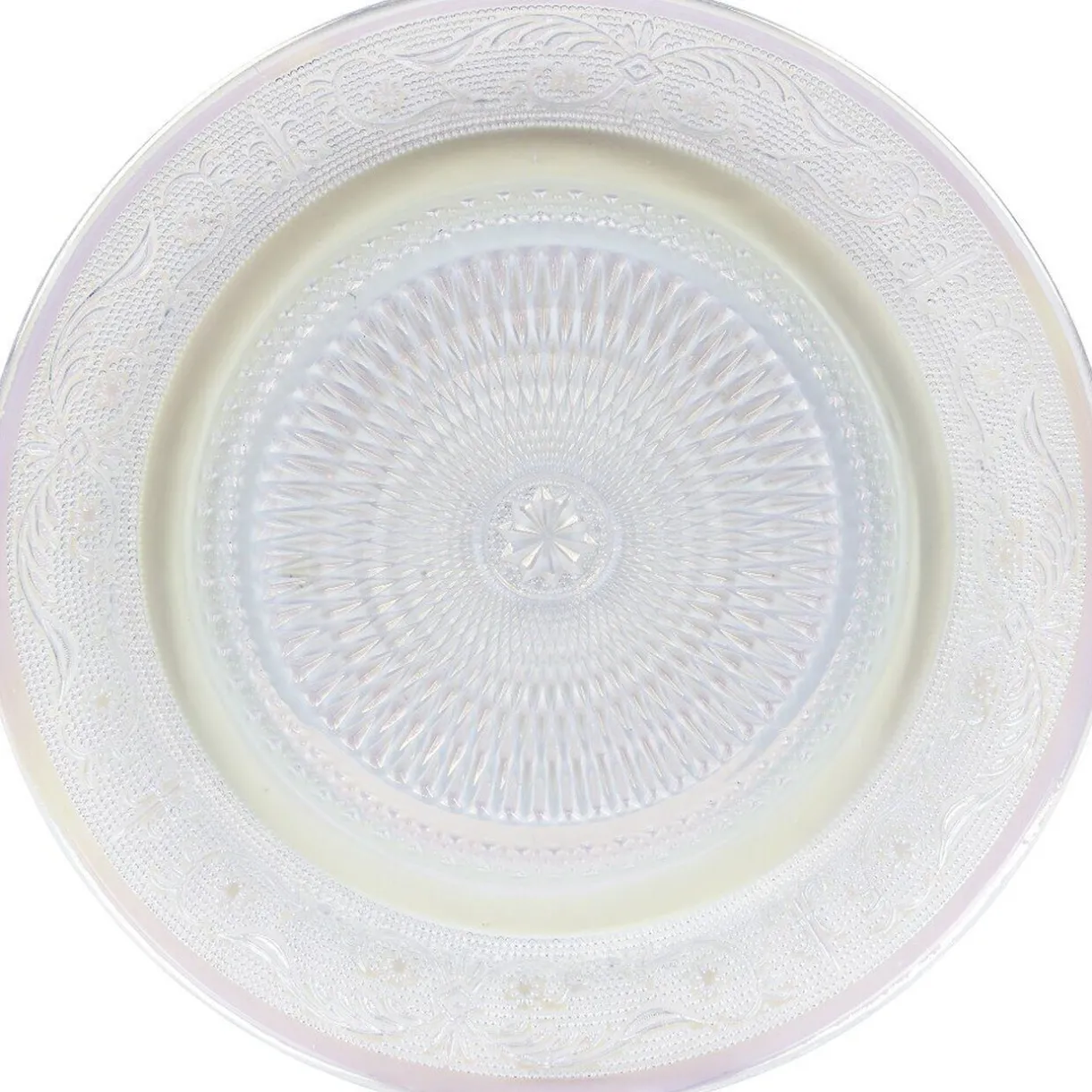 Assiette plate de forme ronde avec décor ciselé design irisé.