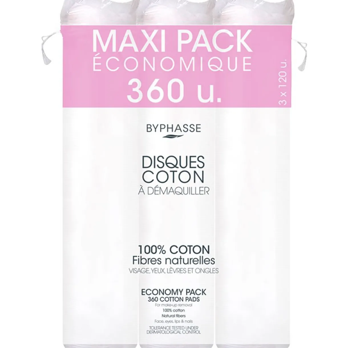 Pack de 360 disques en coton pour se démaquiller tout en douceur.