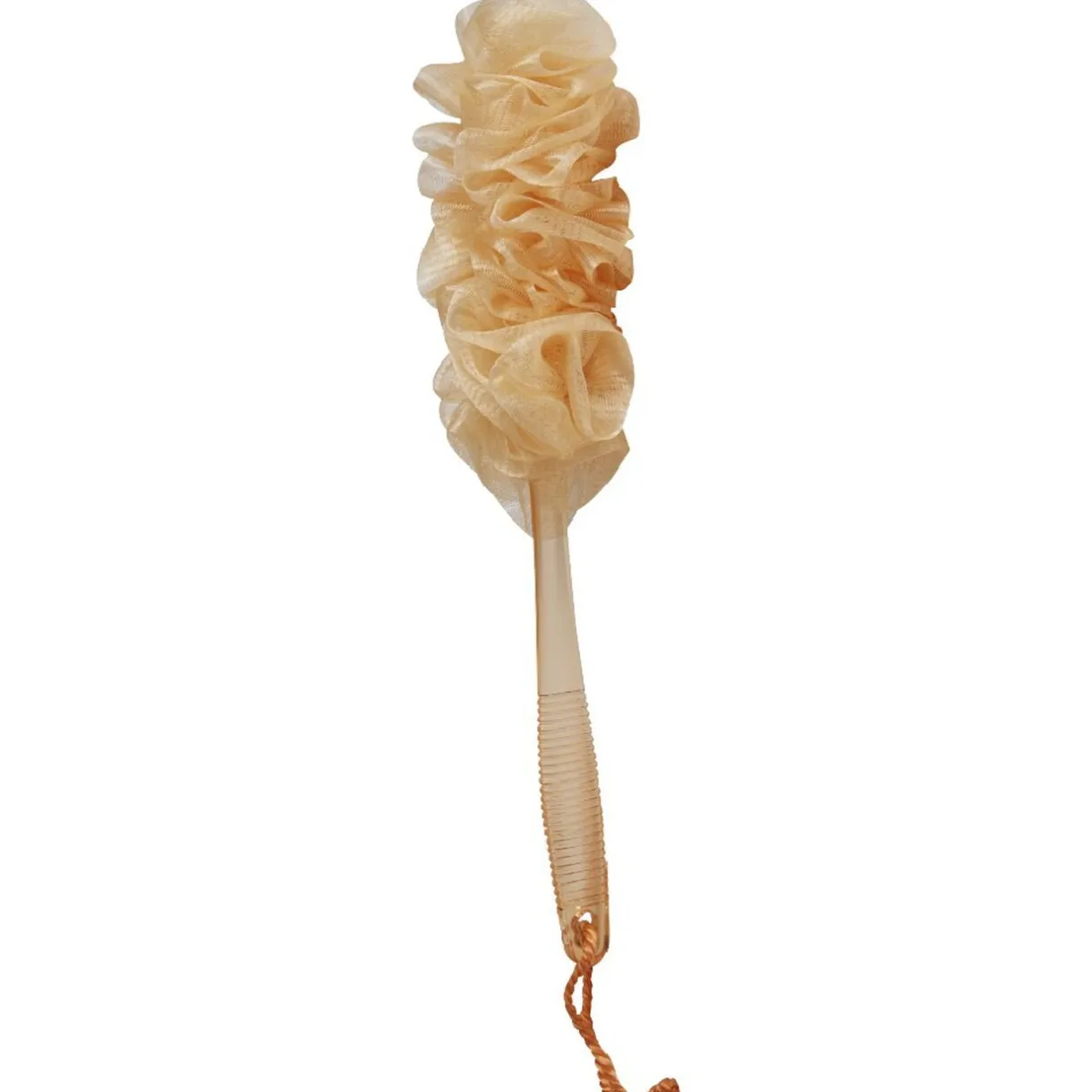 Manche en plastique et partie brosse sous la forme d’une fleur de bain. Son manche permet d’atteindre plus facilement le dos et la fleur de bain permet un nettoyage confortable et délicat du corps.