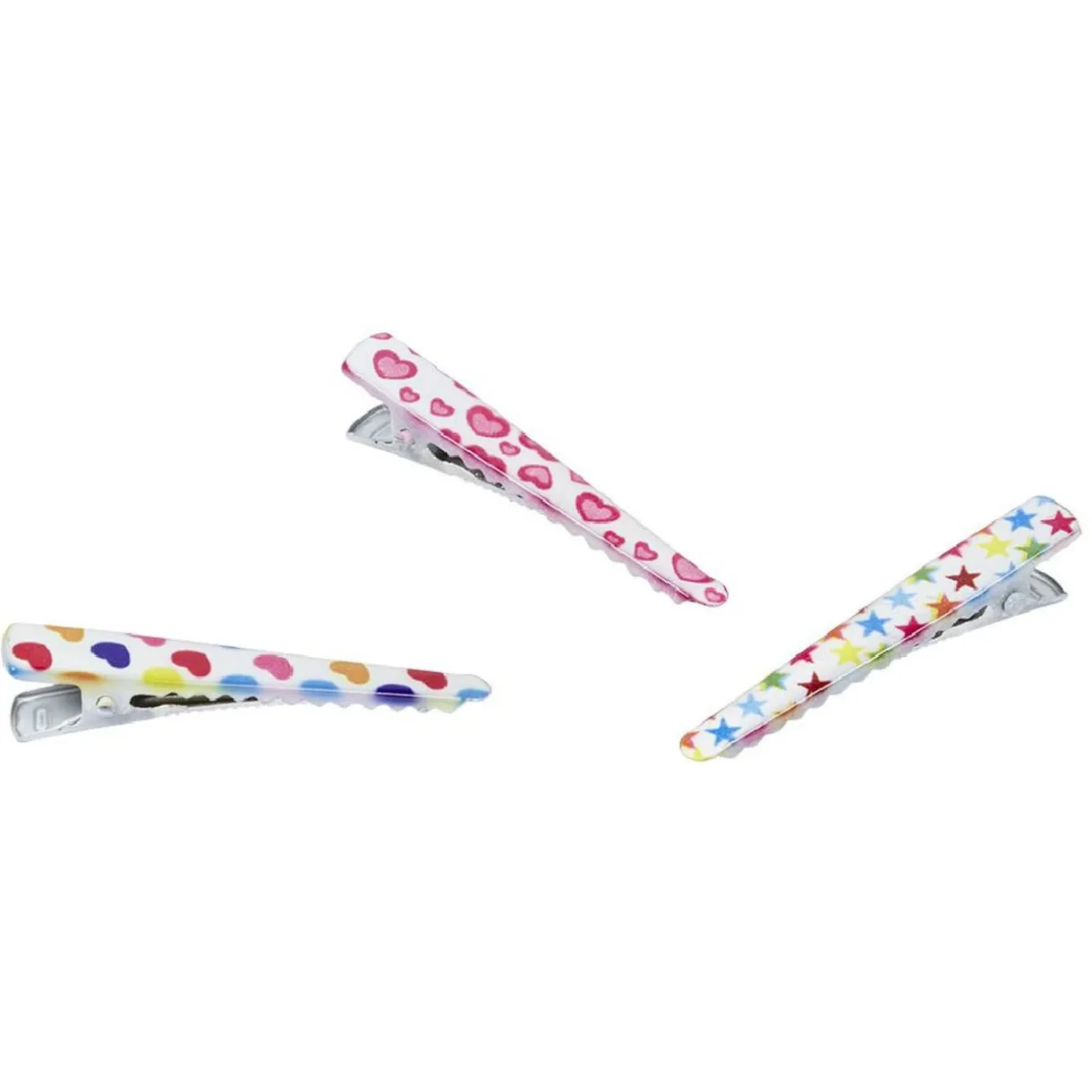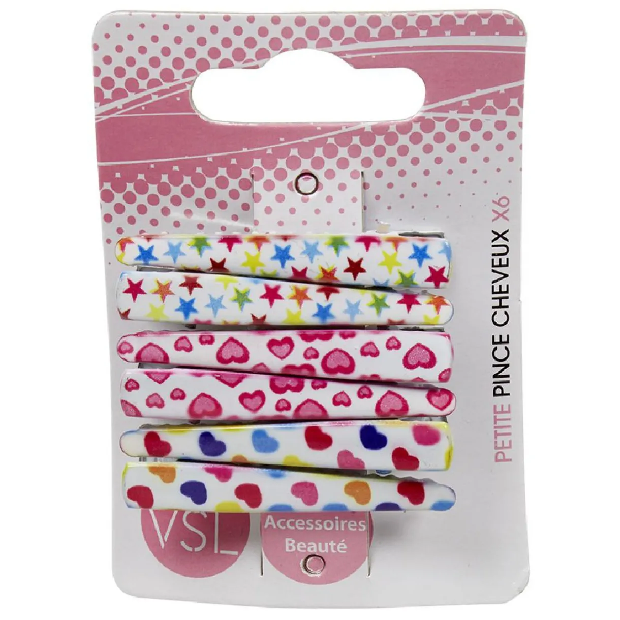 Lot de 6 pinces à cheveux multicolores pour enfants, motif étoiles et coeurs.