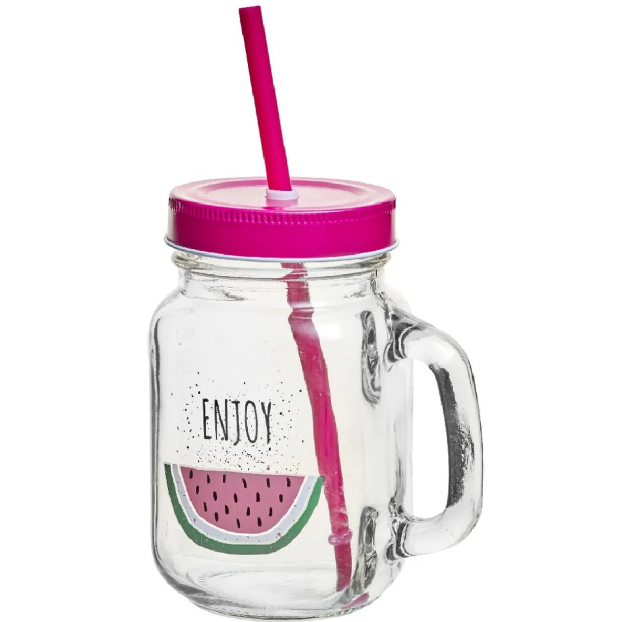 Profitez de la vie et sirotez votre boisson l’esprit tranquille avec cette jolie tasse à anse au design pastèque rose fuchsia. Inscription « enjoy ».