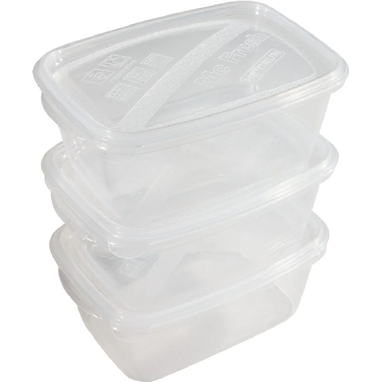 3 boîtes alimentaires transparentes.