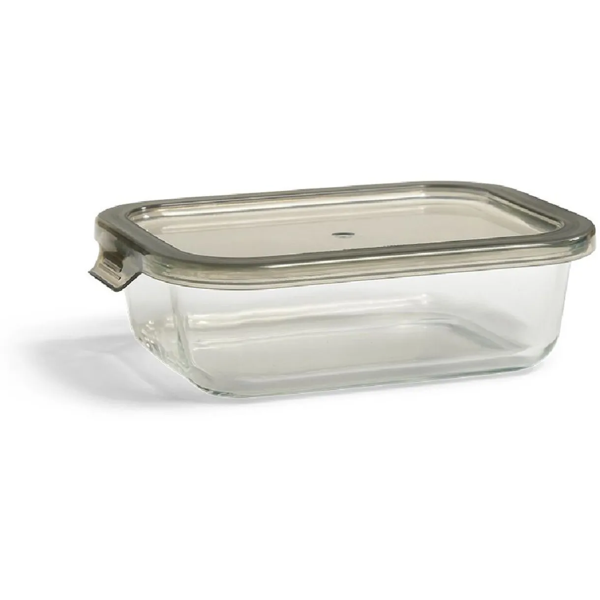 Boîte rectangulaire en verre avec couvercle à clips et joint étanche d’une capacité de 640 ml. Solide et multifonction, cette boîte translucide vous servira pour conserver, réchauffer et transporter vos repas partout avec vous !