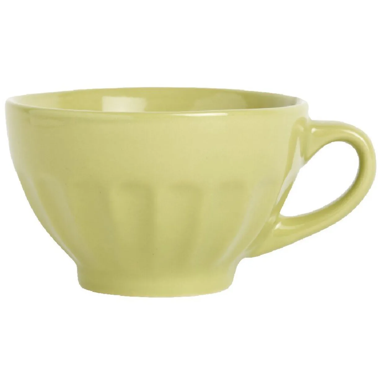 Bol à café verte cotelé avec anse, dim. Ø10xh.6,5 cm, grès.