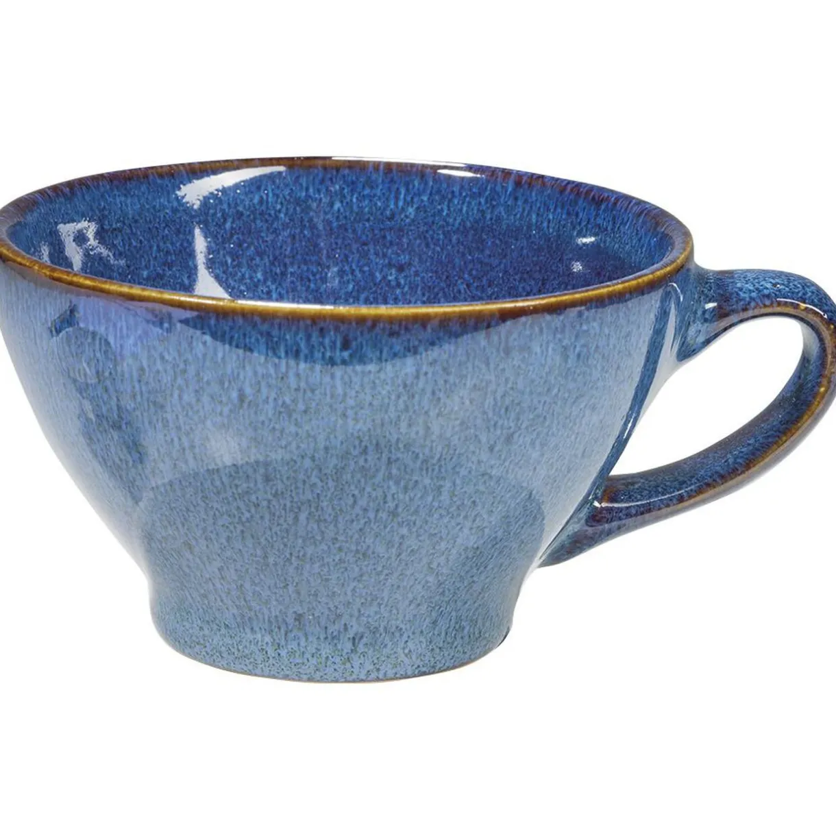 Bolée à cidre avec anse en grés bleu ou blanc.