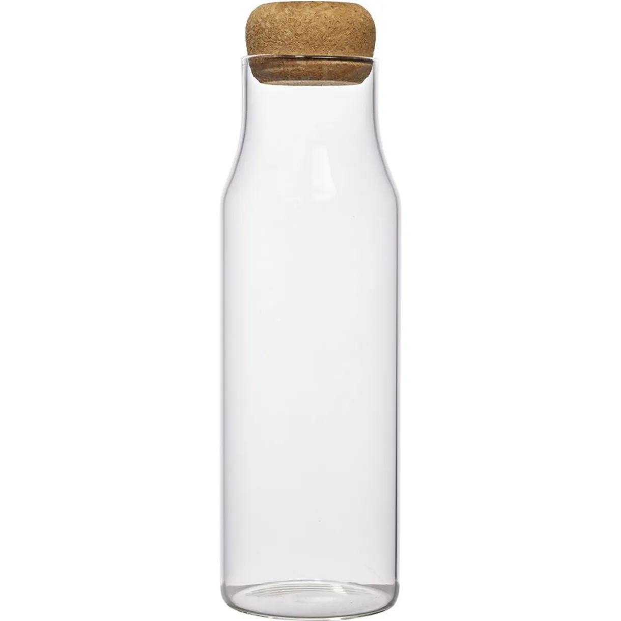 Bouteille en verre et son joli bouchon de liège. Transparente, vous pourrez à tout moment connaître le niveau de votre boisson. Cocktail, soda, eau… à remplir selon vos envies !