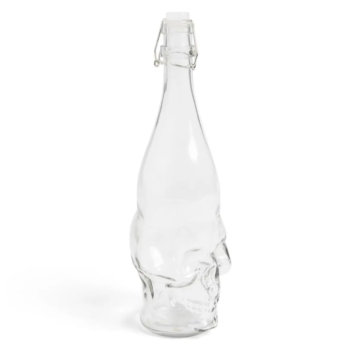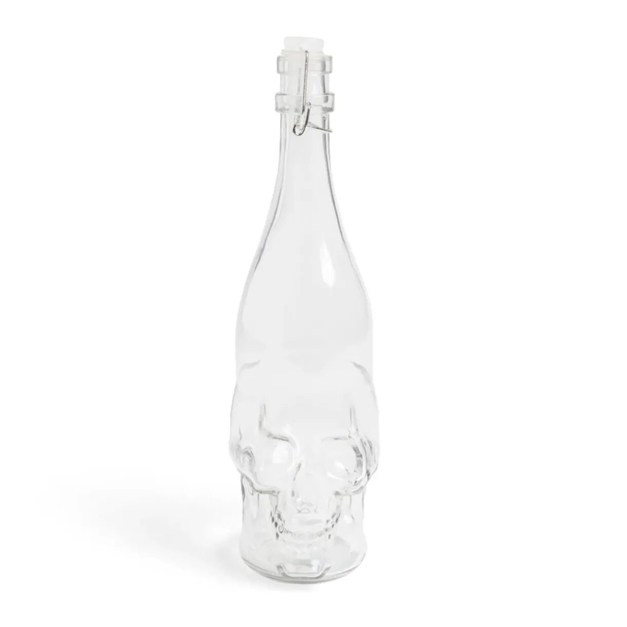 Ajoutez une touche tendance à votre décoration de table à l’occasion d’Halloween avec cette bouteille en verre transparent en forme de tête de mort.