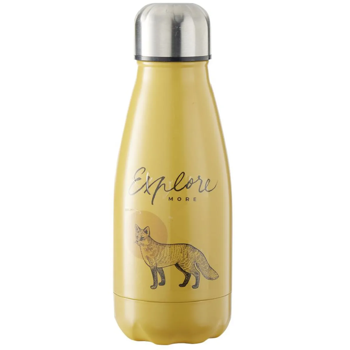 Idée cadeau : Jolie bouteille isotherme en inox d’une contenance de 260 ml avec sa housse en coton munie d’un mousqueton pour un transport facile.