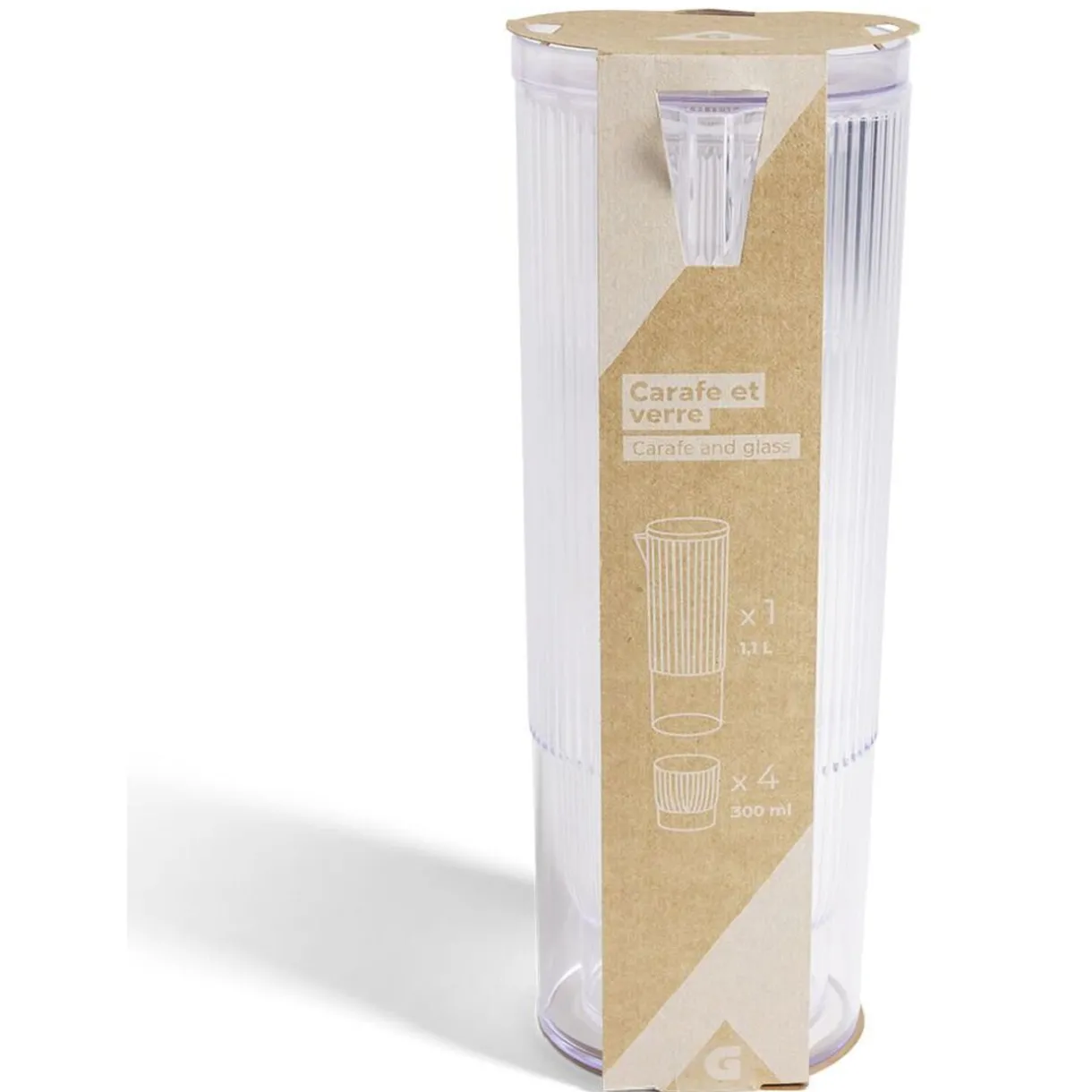 Carafe 1,1L + 4 verres 300mL polystyrène et silicone transparent^Gifi New