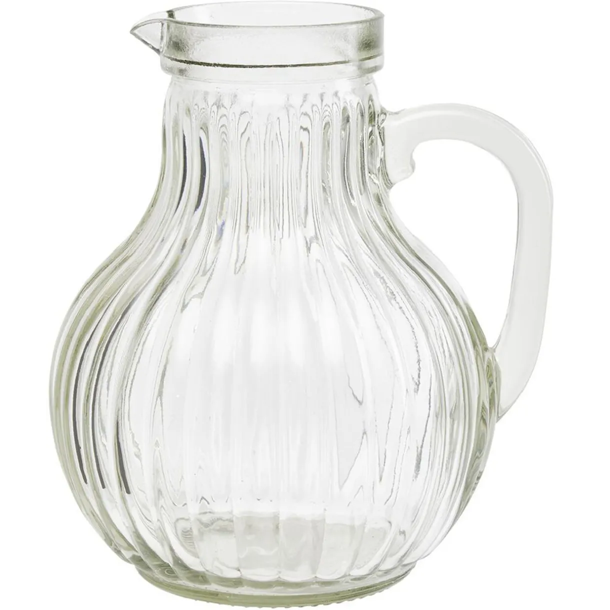 Jolie carafe en verre strié d’une capacité de 2L, incontournable pour mettre de l’eau à disposition sur la table.
