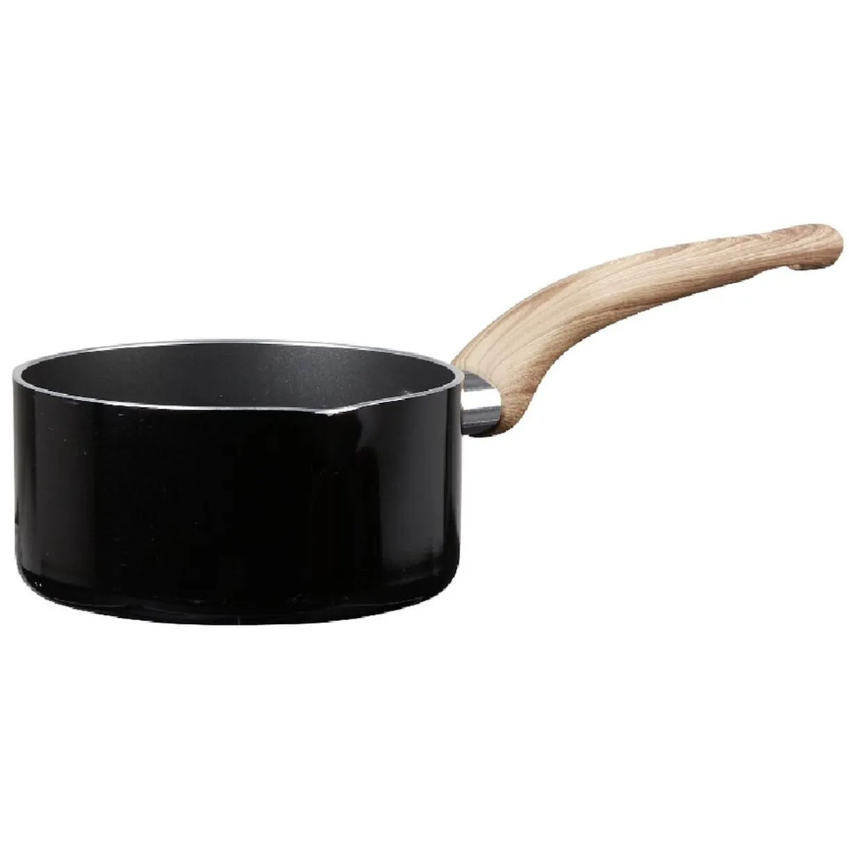 Casserole noire avec alliage aluminium et manche effet bois, compatible tous feux dont induction.