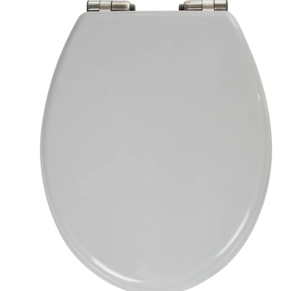 Abattant WC en plastique uni de couleur gris muni d’un frein de chute.