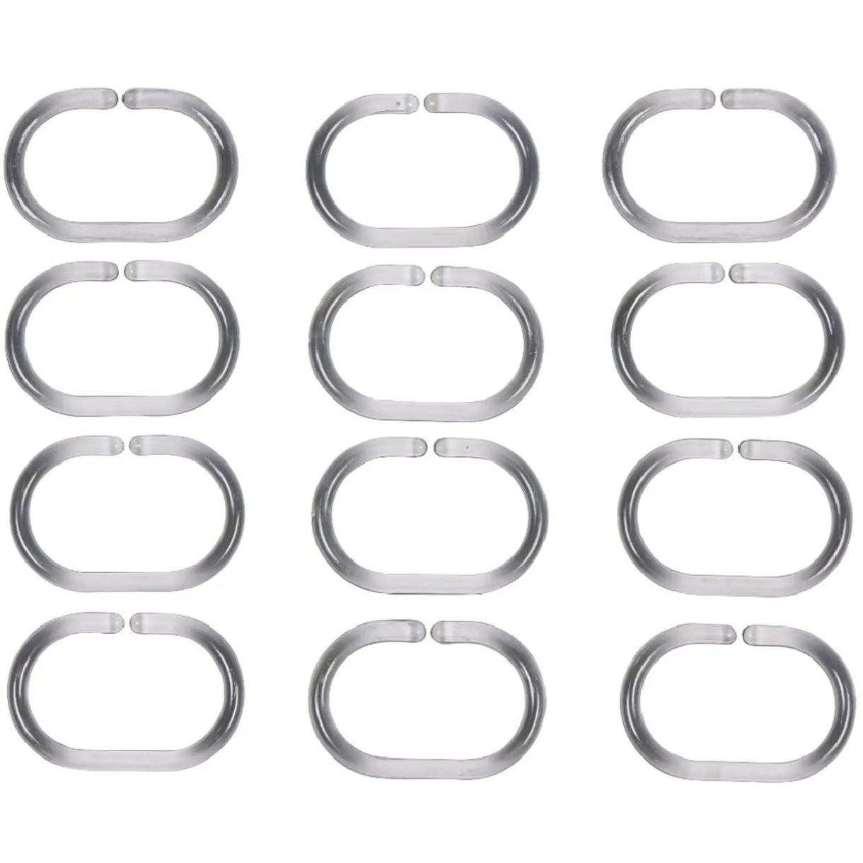 Lot de 12 anneaux de douche blancs de forme ovale.