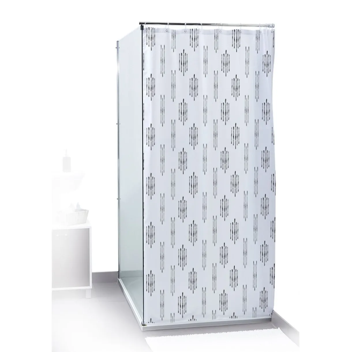 Adoptez ce rideau au design graphique blanc et noir.