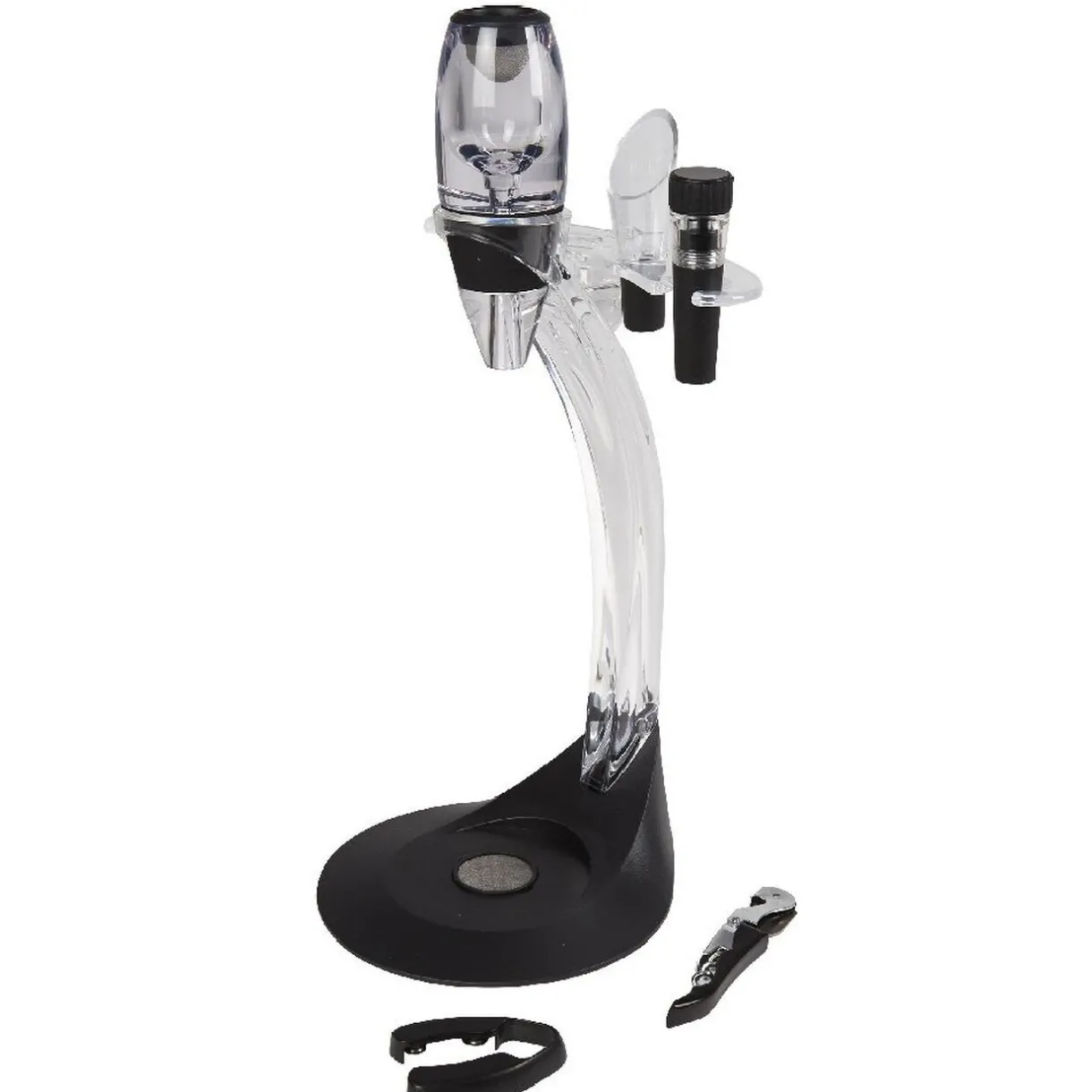 Ce coffret de dégustation de 7 pièces séduira tous les amateurs de vin! Il comprend 1 support à décanter (H. 30 cm), 1 décanteur, 1 tire-bouchon, 1 découpe opercule, 1 bec verseur, 1 bouchon, et 1 pochette de rangement.