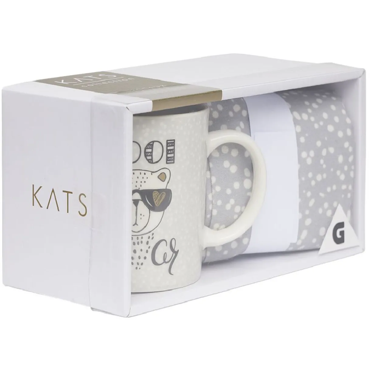 Coffret cadeau avec mug en porcelaine et totebag au design assorti.