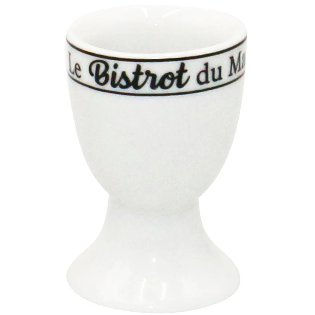Ayez une jolie présentation pour déguster vos oeufs à la coque avec ce coquetier blanc décoré de son inscription noire « Le Bistrot du Marché ».
