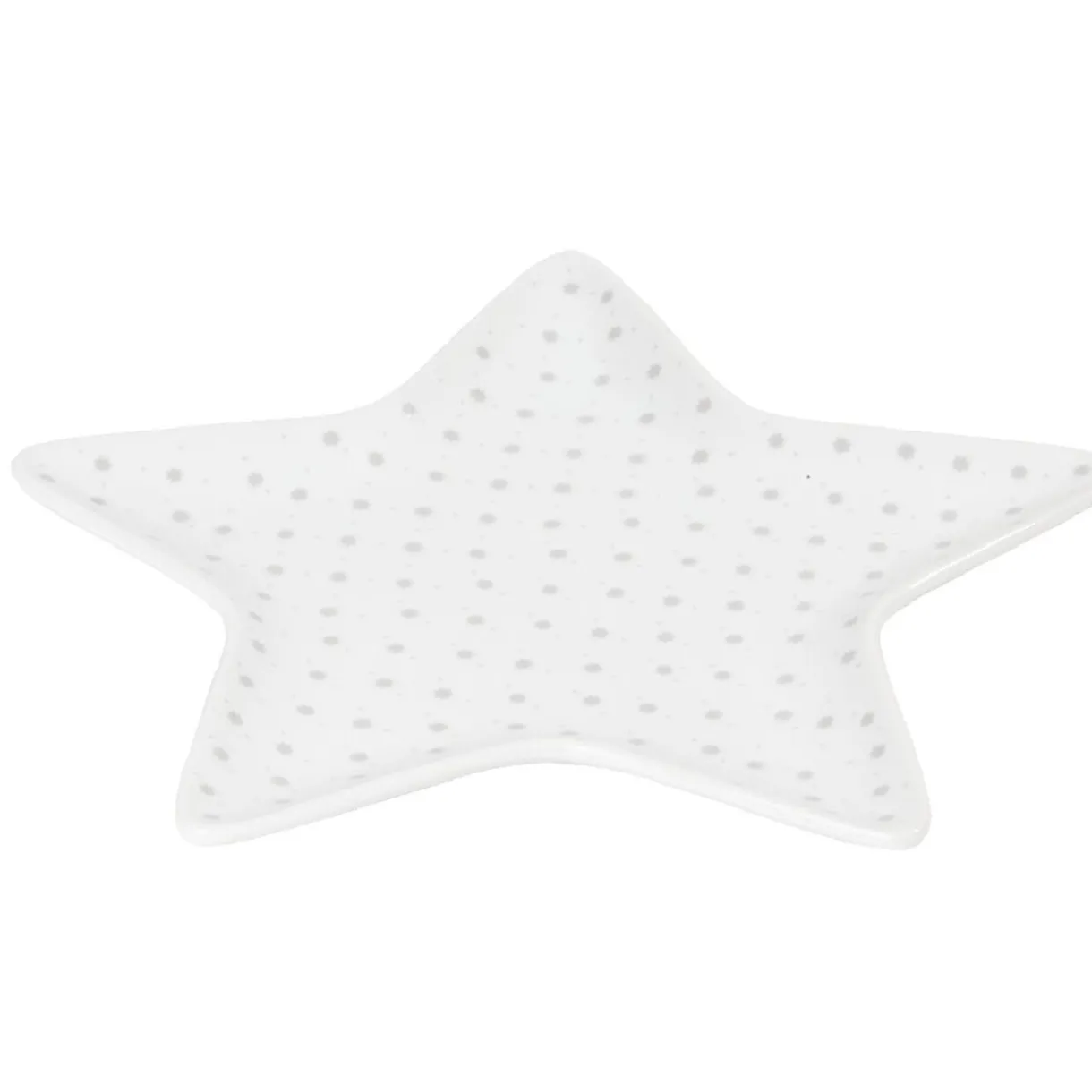 Pour présenter un apéritif ou une entrée de façon originale, placez des brochettes dans cette coupelle blanche à pois gris en forme d’étoile. Elle sera idéale pour un anniversaire ou pour Noël.