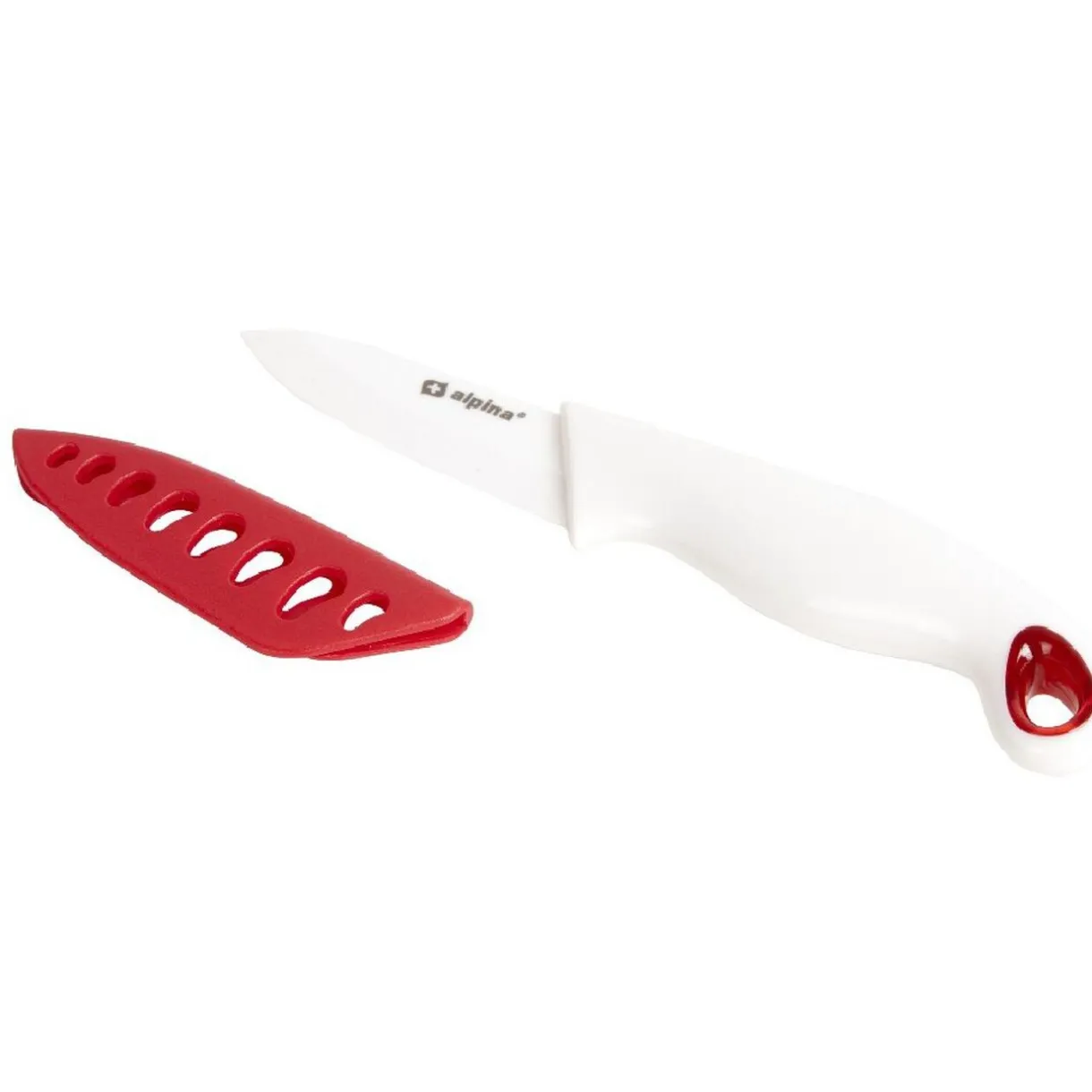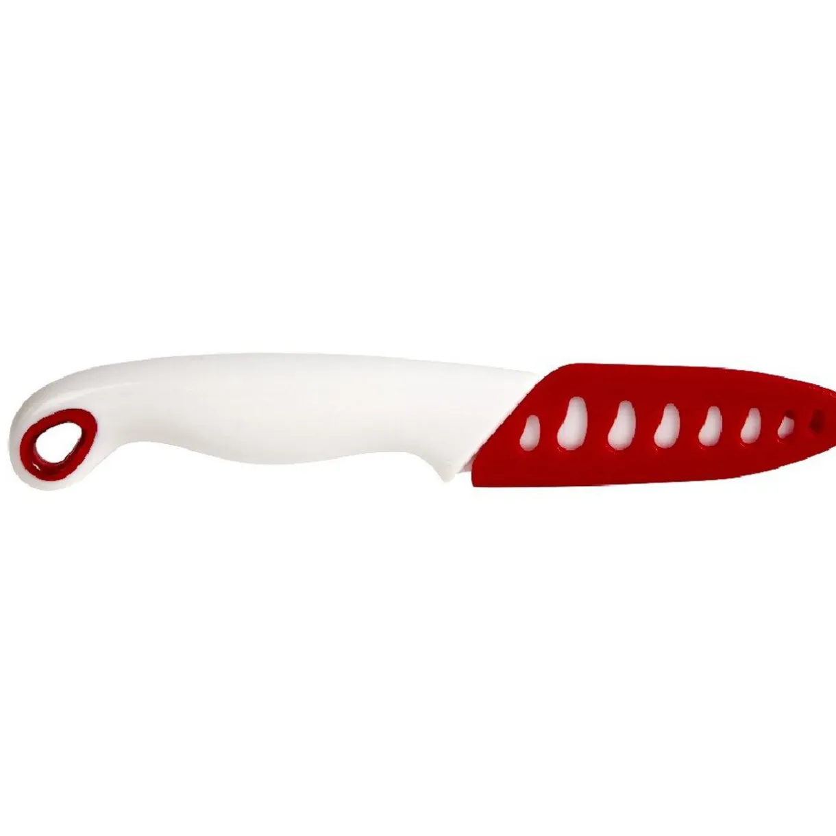 Couteau d’office blanc L. 17 cm, céramique, étui rouge.