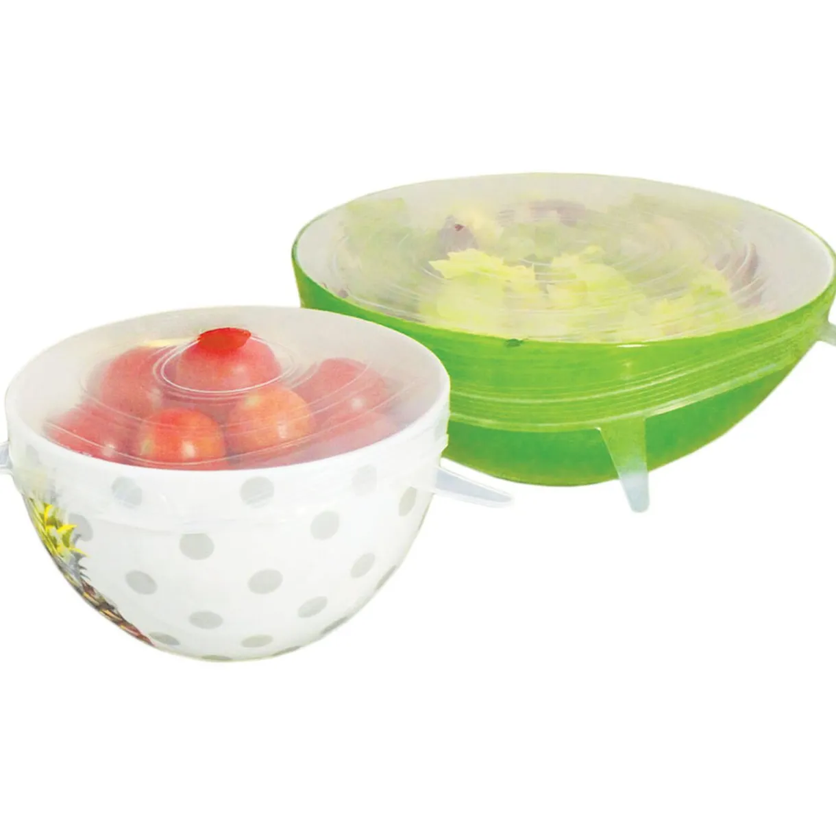 Fini le film plastique qui se déchire ! Ce lot de 4 couvercles en silicone extensible lavables et réutilisables vous permettra de couvrir hermétiquement tous vos contenants alimentaires.
