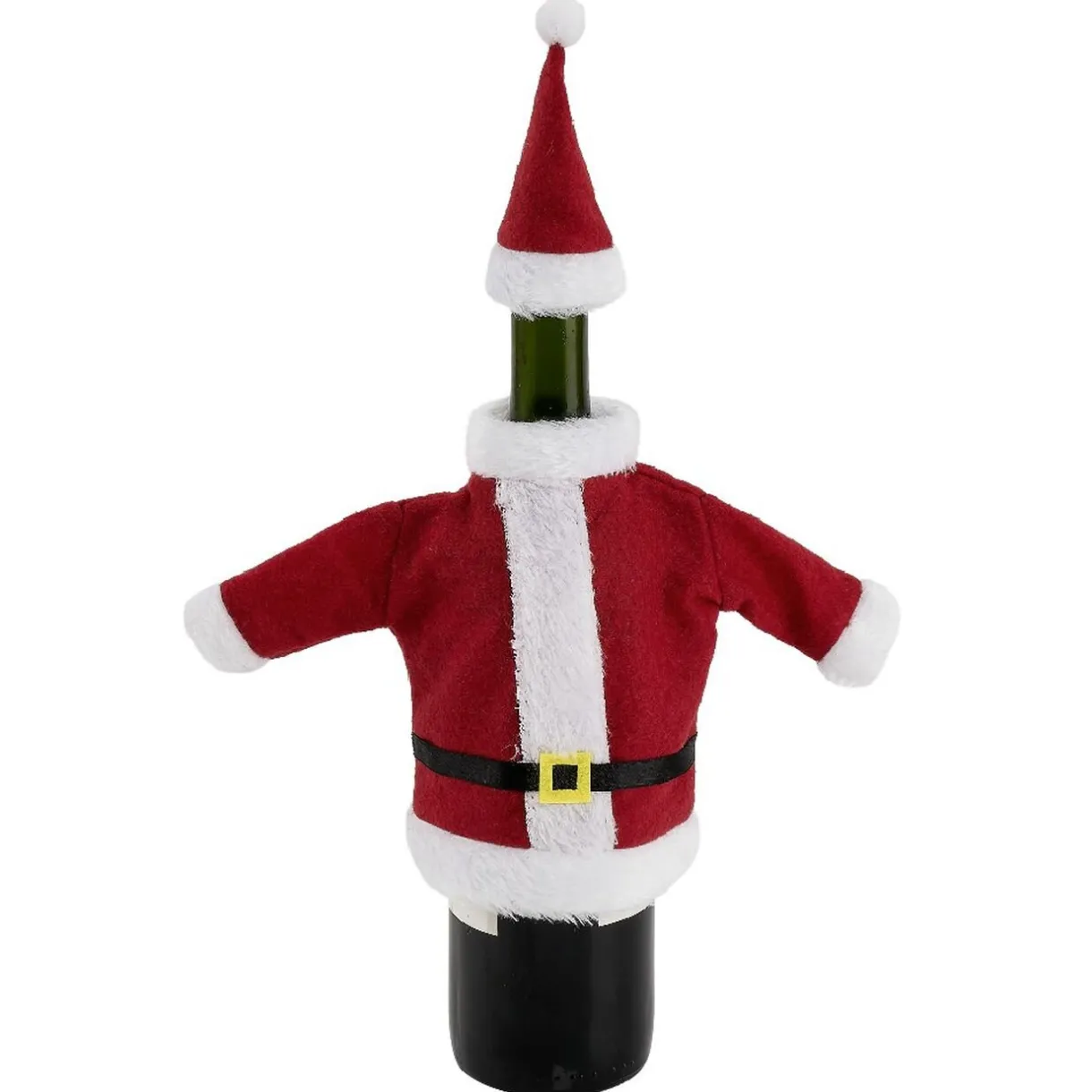 Habillez joliment votre bouteille à l’occasion de Noël avec ce joli manteau et chapeau de Père Noël rouge et blanc.