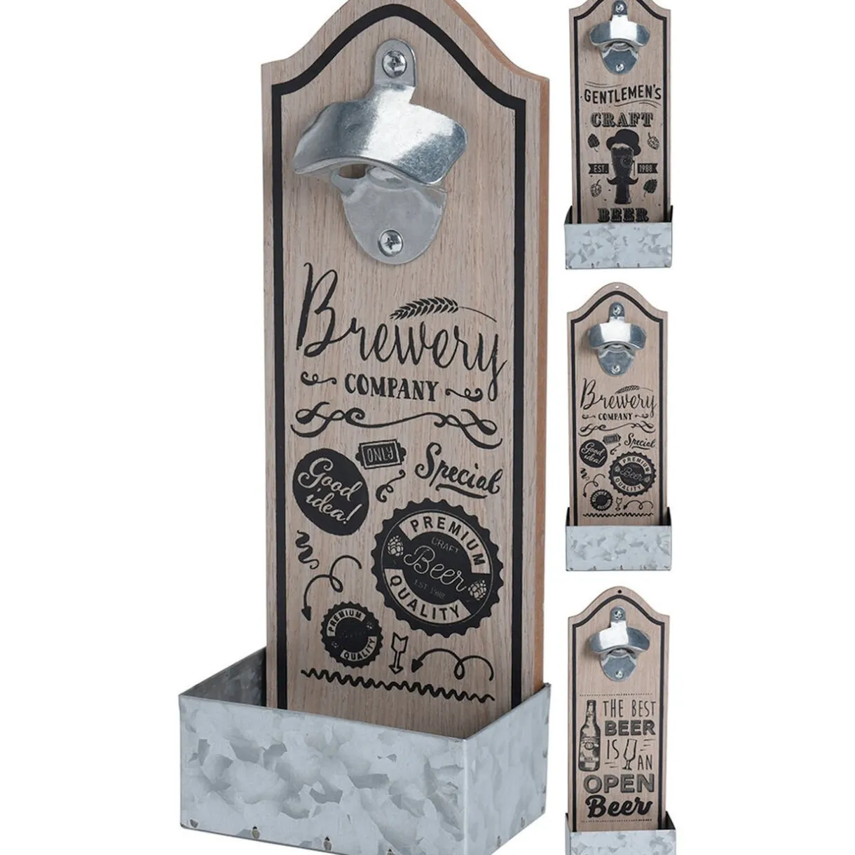 Décapsuleur mural en bois avec inscription sur le thème bistrot.