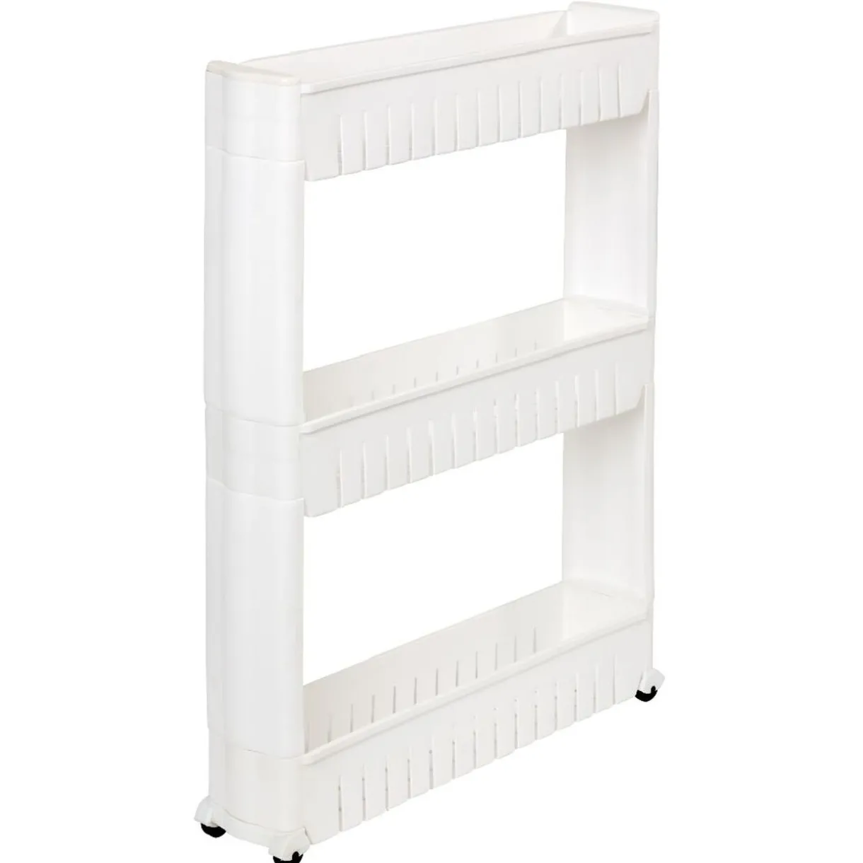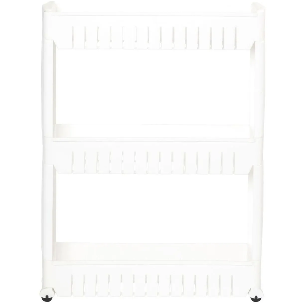 Cette desserte étroite à 3 niveaux se glisse facilement dans tous les recoins ! Parfaite pour optimiser le rangement dans la cuisine, la salle de bain ou la buanderie.