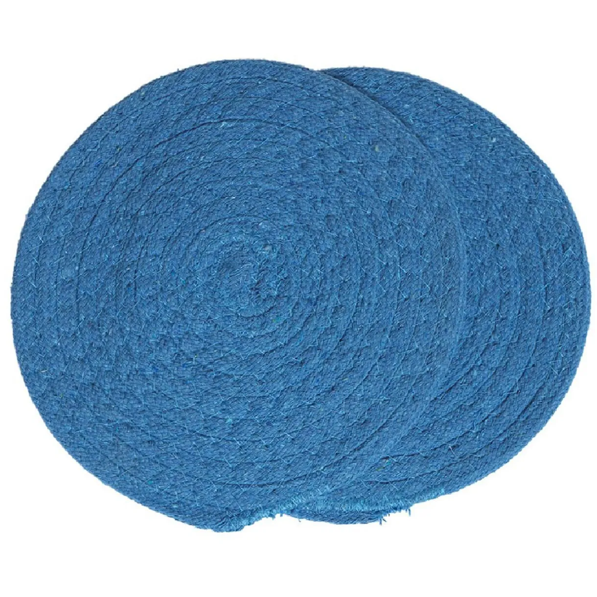2 dessous de plat rond en coton de couleur rouge, bleu ou vert.