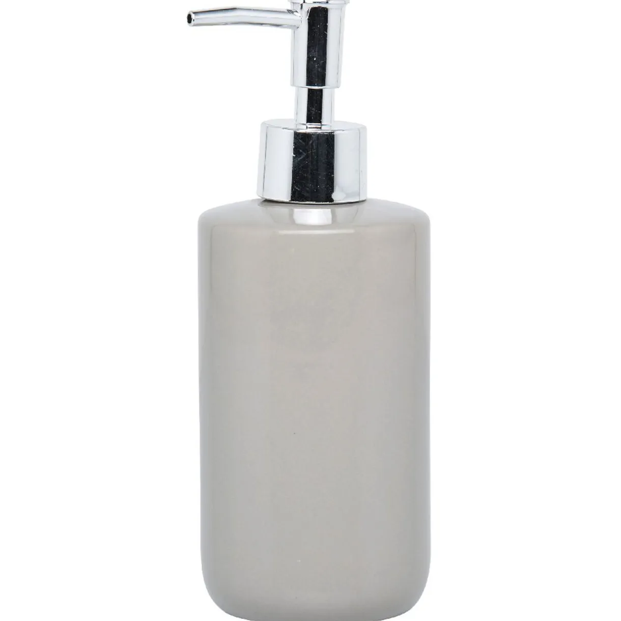 Distributeur à savon de couleur taupe.
