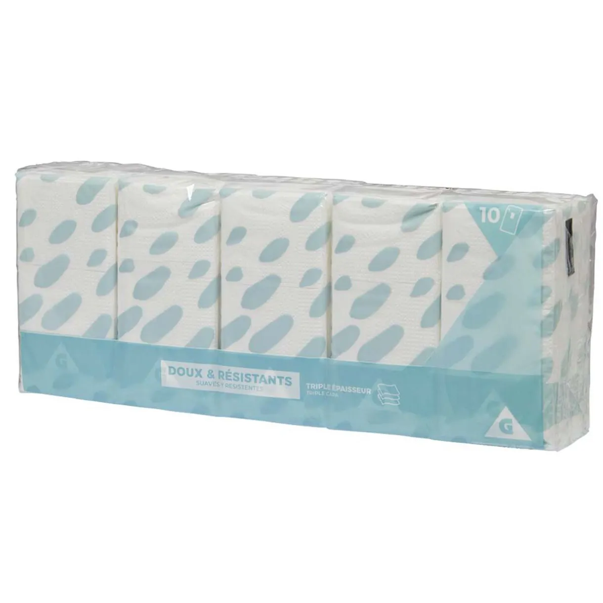 Lot de 10 paquets de mouchoirs en papier blanc. Gardez toujours en un à glisser dans la poche ou le sac pour ne jamais être à court.