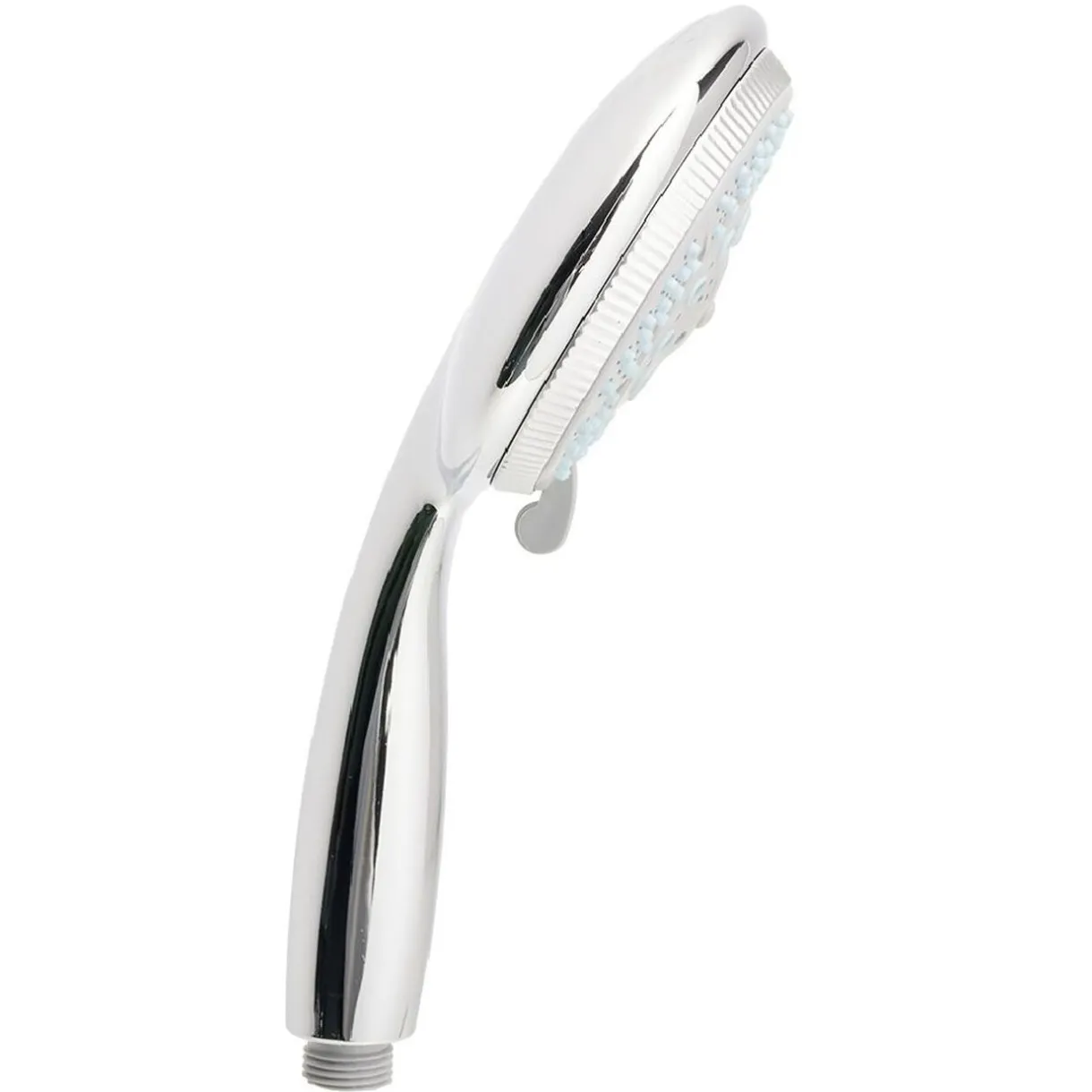 Pratique, ce pommeau de douche en acier gris argenté est muni de 5 fonctions de jets.