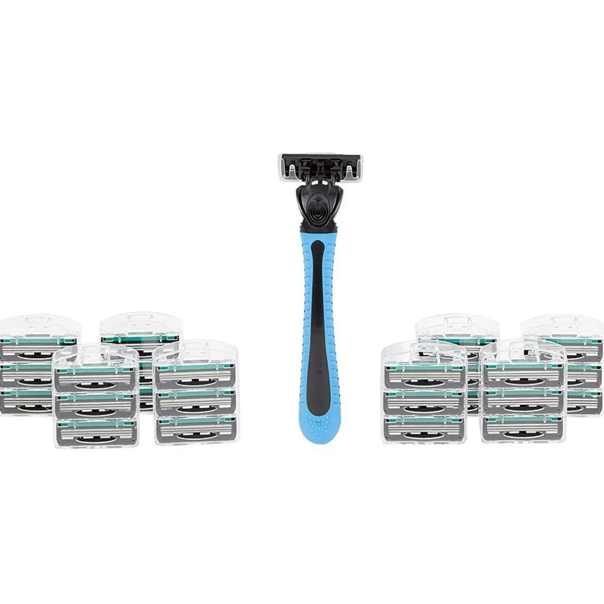 Les têtes de rasoirs se composent de 3 lames et d’une barre de gel à l’aloe vera.