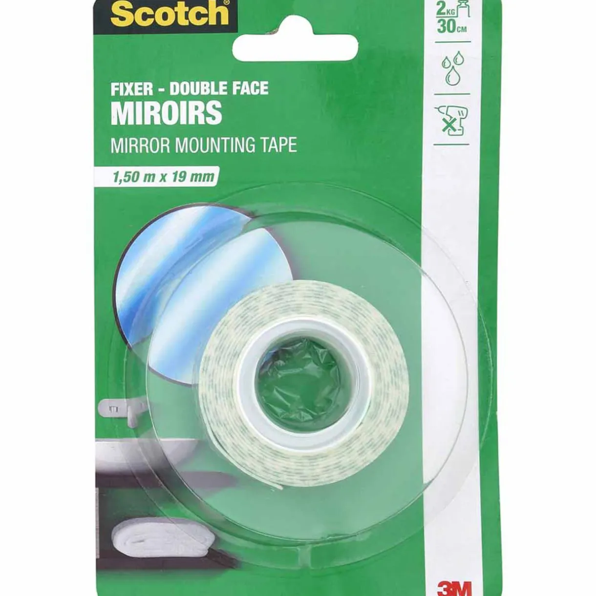 Scotch double face waterproof avec effet miroir sur une face, idéal pour fixer vos éléments jusqu’à 2 kg.