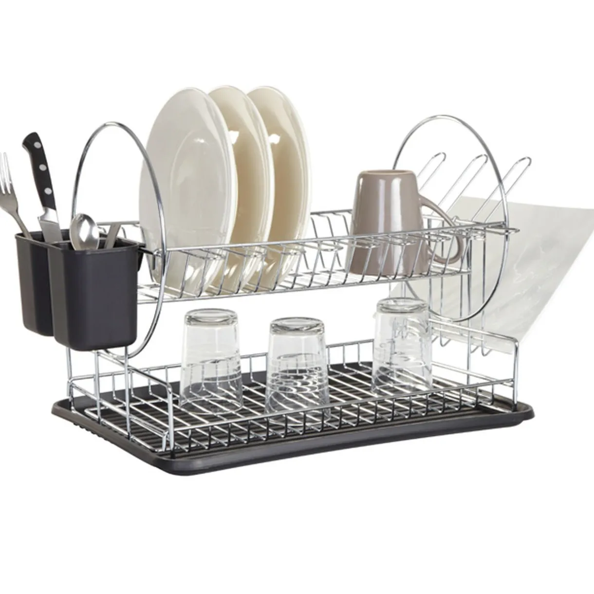 Egouttoir à vaisselle et range-couverts noir, idéal pour faire sécher votre vaisselle en toute sereinité.