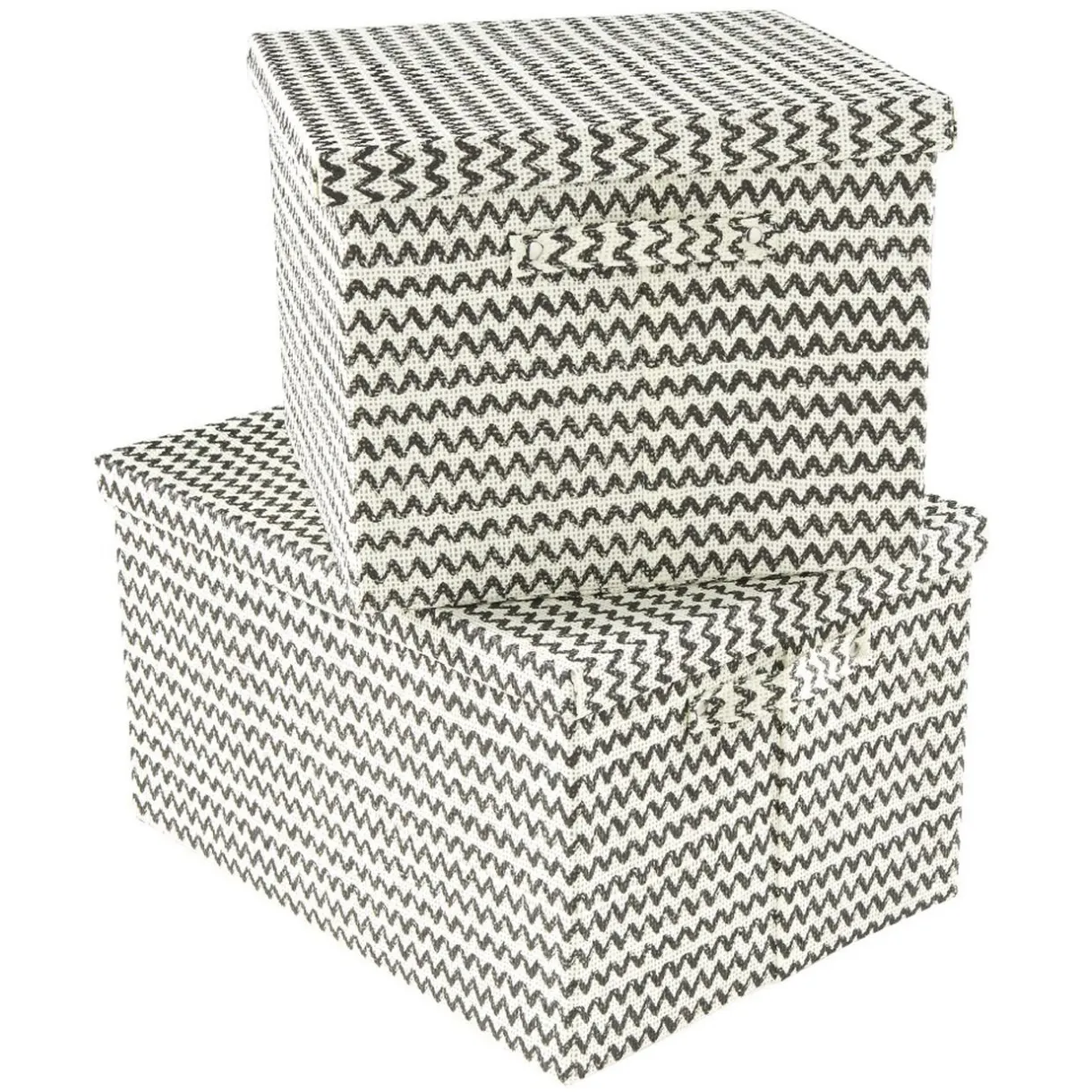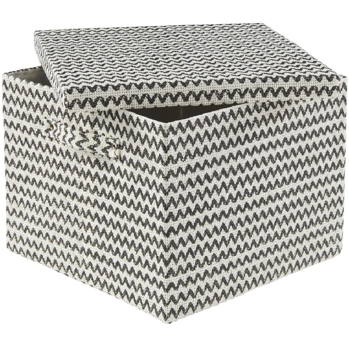 Boîte de rangement pliable avec couvercle à motif zig zag noir et blanc.