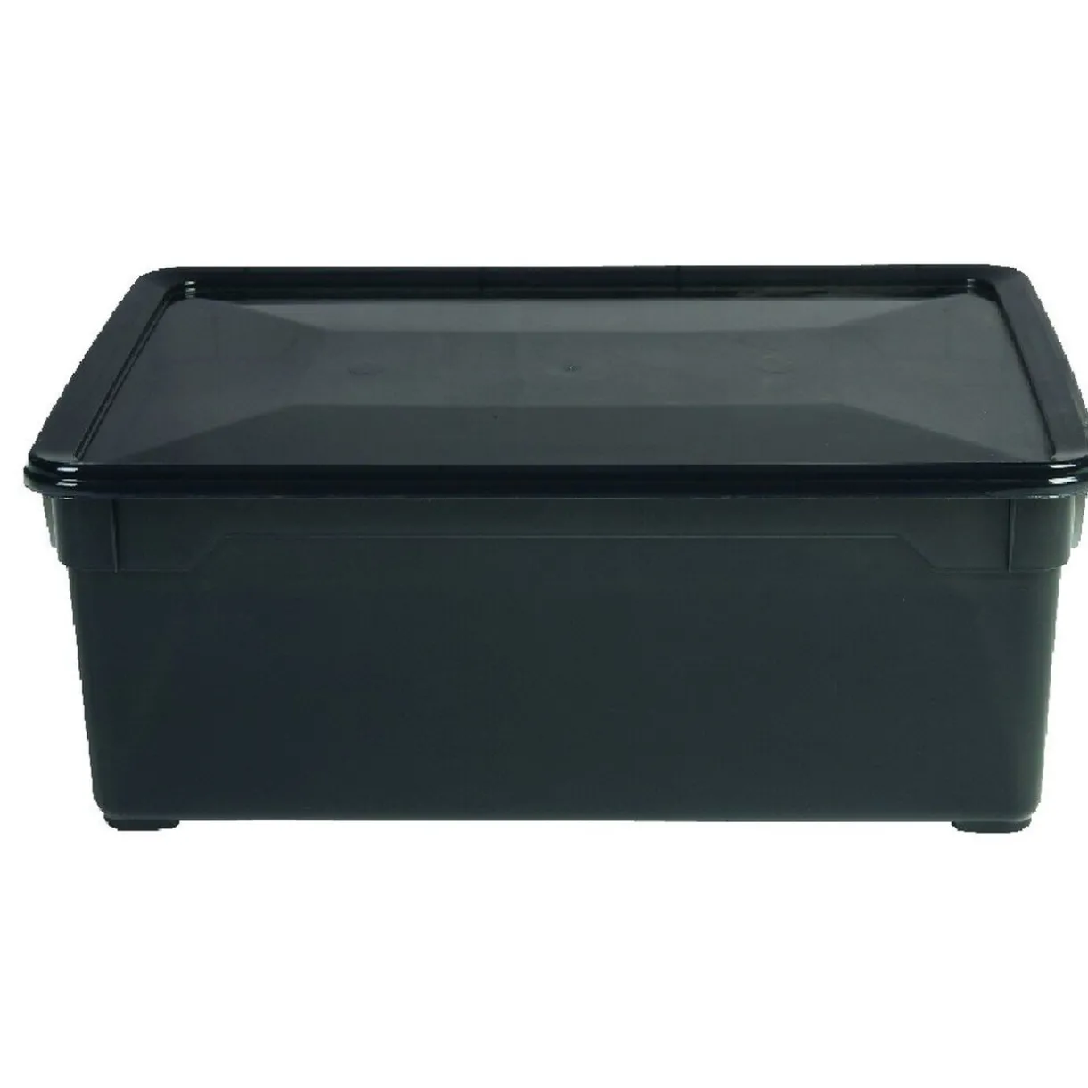 Boîte de rangement noire avec couvercle, cont. 10 L, dim. 36,5×26,5xh.14 cm, polypropylène.