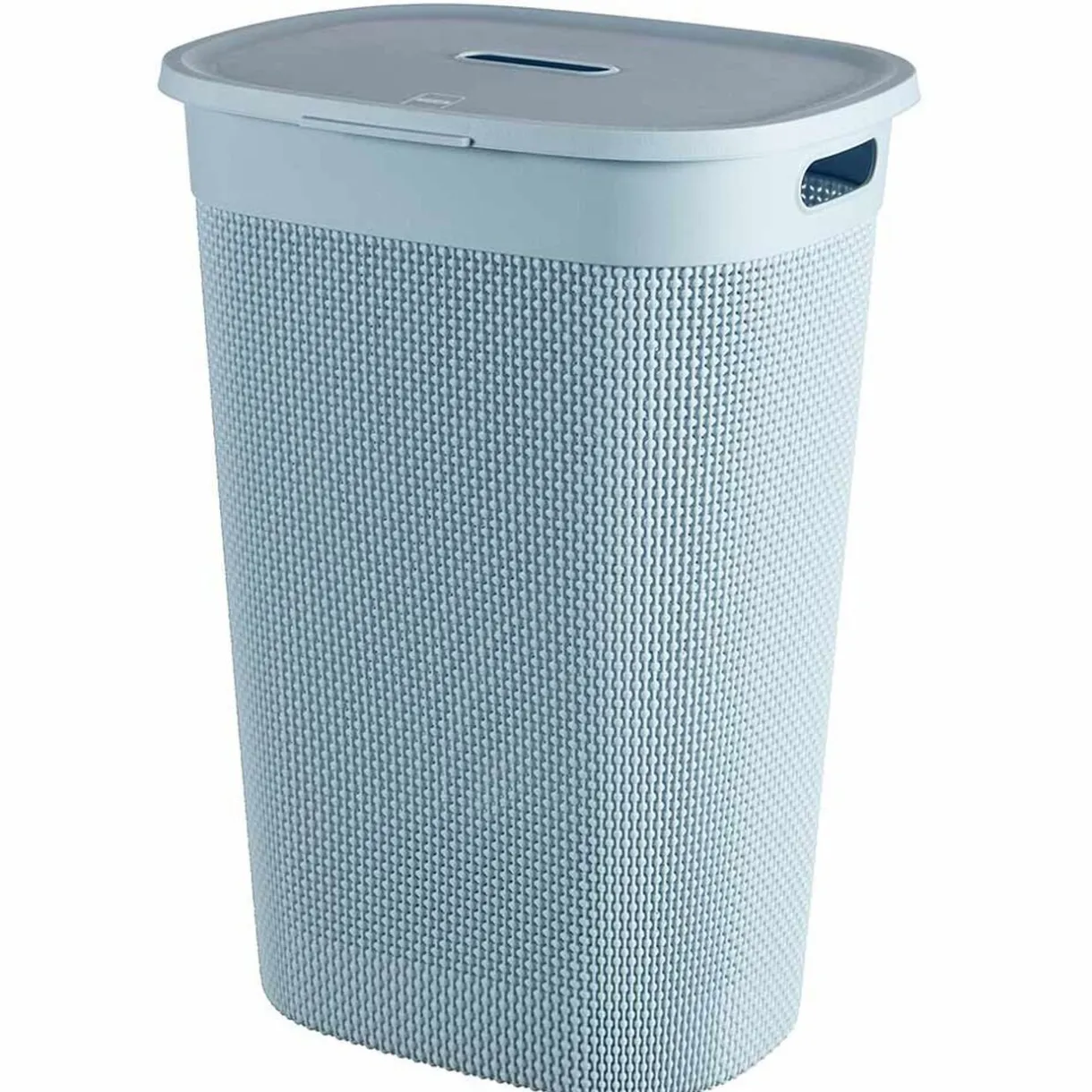 Dissimulez votre linge, propre ou sale en attente de lavage ou de repassage, dans ce coffre à linge de couleur bleue à l’effet tressé.