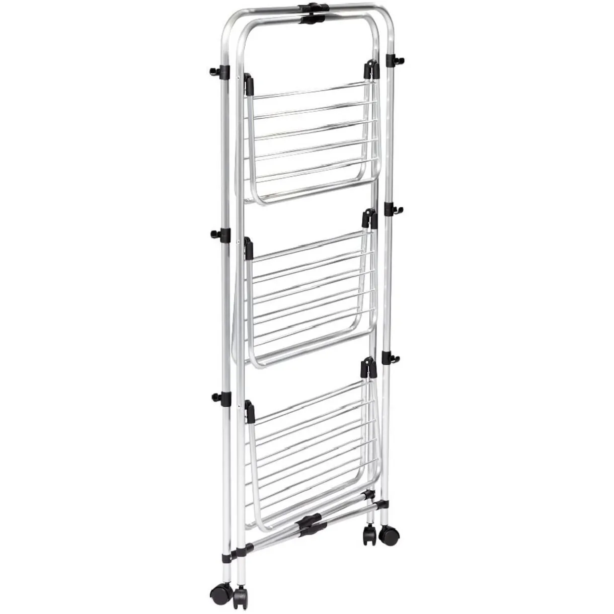 Séchoir tour noir à 3 niveaux d’une capacité de 30 mètres d’étendage facile à déplacer grâce à ses 4 roues.