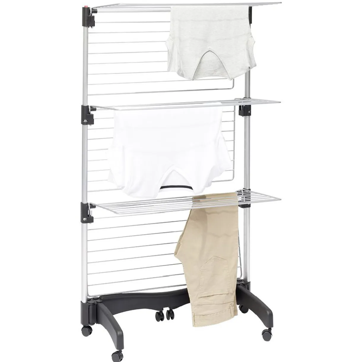 Optez pour cet étendoir en aluminium gris en forme de tour télescopique, idéal pour faire sécher votre linge.